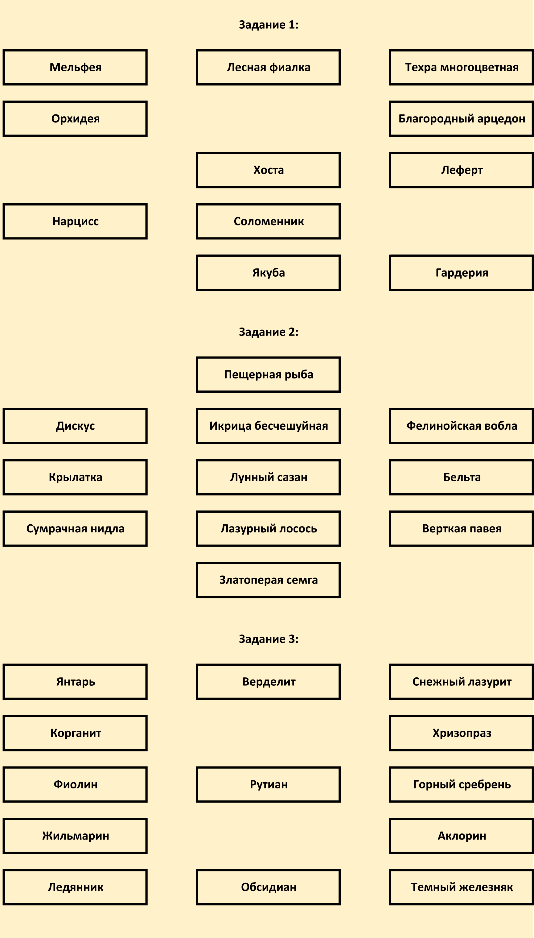 За каждый верно проставленный в ячейку ресурс начисляется 1 балл. Если название ресурса будет написано не полностью или в нем будут присутствовать ошибки или опечатки, то баллы начислены не будут. Лишние символы, символы латинского алфавита, цифры вместо букв, лишние пробелы в словах или отсутствие пробела между словами будут считаться ошибкой.