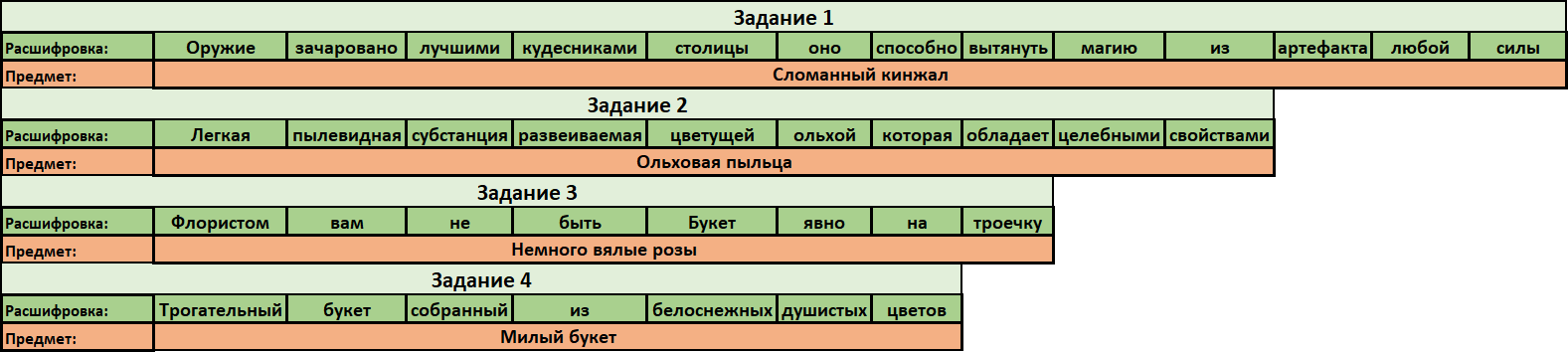 6. Загаданные предметы - предметы, которые можно встретить в событии "